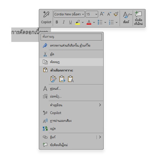 การคัดลอกข้อความ