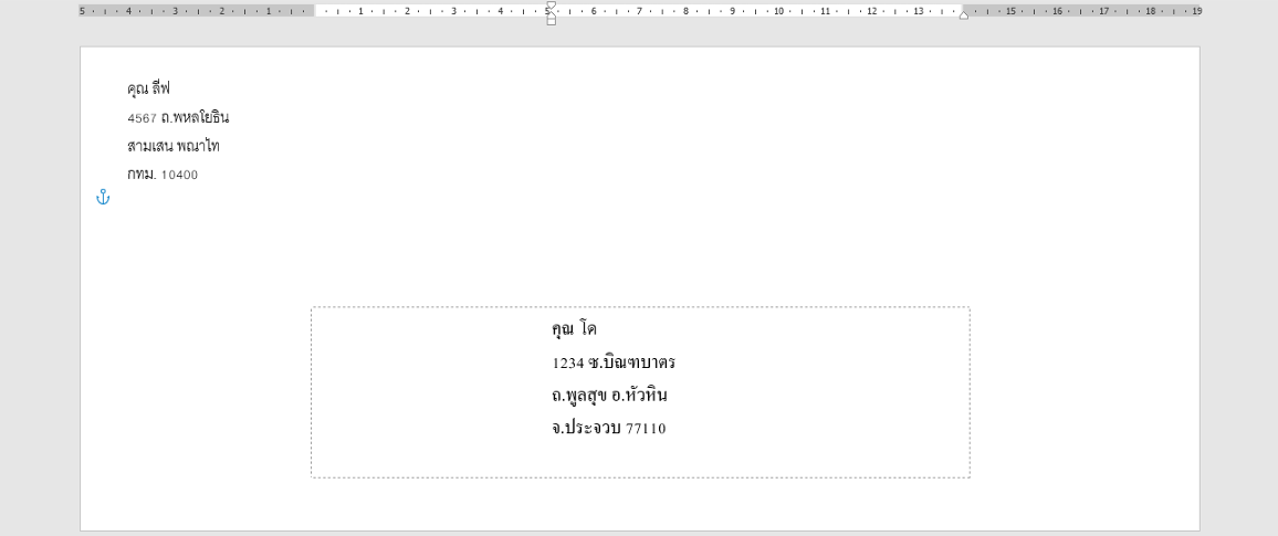 จากนั้นจะกลับมาที่การตั้งค่าซองจดหมาย หากต้องการปริ้นท์ซองจดหมายทันทีให้คลิกที่ปุ่ม Print และหากต้องการปรับซองจดหมายเพิ่มเติมให้คลิกที่ปุ่ม Add to Document เสร็จแล้วก็สั่งปริ้นท์ซองจดหมายของเราได้เลย